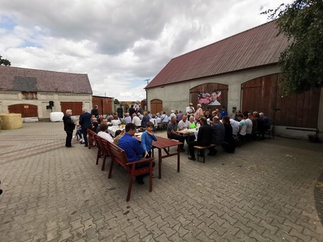 „Wizyta odbyła się w gospodarstwie radnego gminy Pawła Michałowicza (gospodarstwo z krowami mlecznymi) w Bieżyniu. Podczas spotkania odbyło się mini forum rolnicze z przybyłymi rolnikami i sadownikami. Premier Morawiecki pochwalił radnego za inicjatywę z rozwieszaniem po gminie banerów zachęcających do kupowania produktów z kodem 590, czyli tzw. „polskich produktów”. Z inicjatywą zaproszenia premiera Morawieckiego do radnego Michałowicza wyszedł członek zarządu PiS powiatu kościańskiego – Marek Bąkowski, który zawodowo zajmuje się uprawą czereśni, które wręczył w darze premierowi”.