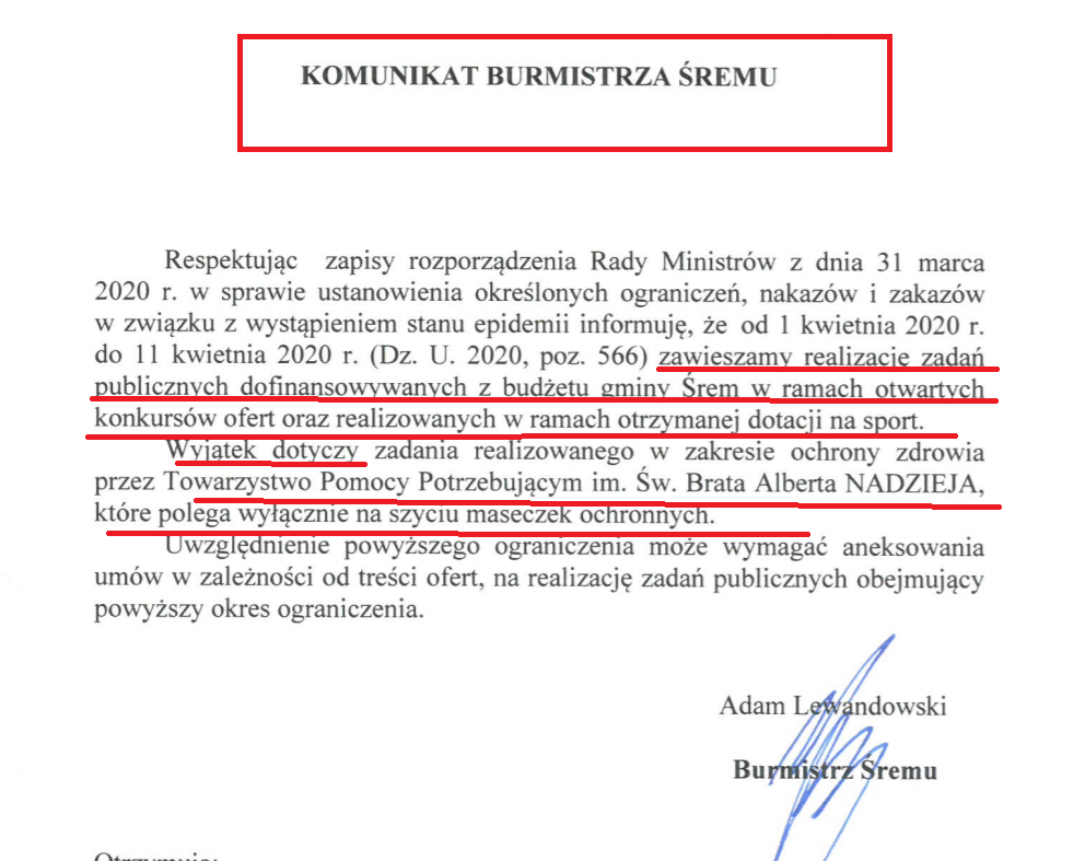 List od czytelniczki.Wygląda na krytyczny wobec burmistrza Śremu, co w obecnej chwili zakrawa na „obrazoburstwo”! Przecież Pan Adam Lewandowski jest naszym jedynym i troskliwym prawdziwym Ojcem Miasta!