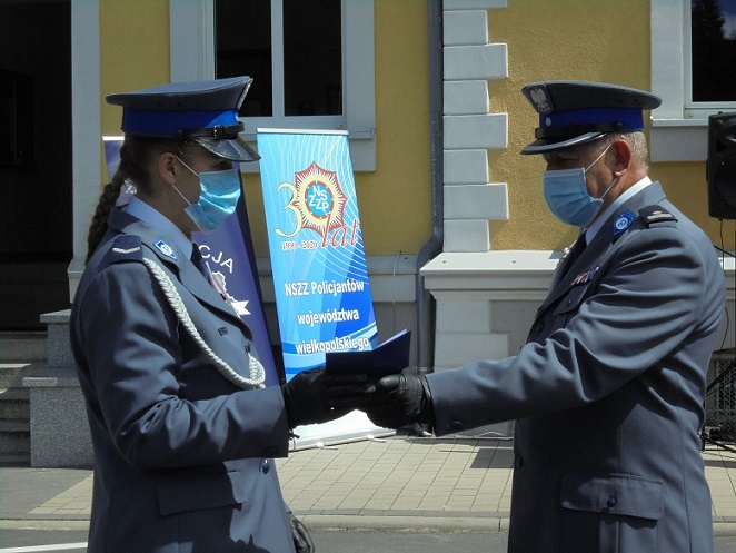 Dziś w Śremie obchodzono Święto Policji. W nieco innej formie niż do tej pory. Zasadnicze obchody miały formę uroczystej zbiórki przed budynkiem Komendy Powiatowej Policji.